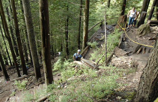 At the top of Grouse Mountain is a popular ski hill in the winter months. Even in June, there is evidence of snow on the ground. Nice restaurant/pub at the top to enjoy the great views of the beautiful city of Vancouver and your success of completing the grind. We enjoyed the Gondola ride back down the mountain! Grouse Mountain has gone green with their own wind turbine with observation deck, which is visible from downtown Vancouver. It was great to view one of them erected, after having our swivels and cable pulling eyes be used on similar projects.